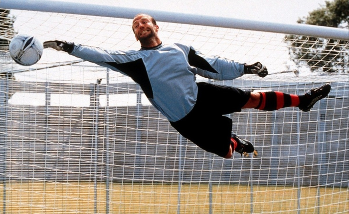 Примерно между первыми ролями у Гая Ричи и главными ролями в популярных боевиках, Джейсон Стэтхэм снялся во второстепенной роли в фильме «Костолом» (2001) про тюремную команду, играющую против команды охранников. Он неплохо вошел в роль вратаря, поэтому ставим его именно на эту позицию.