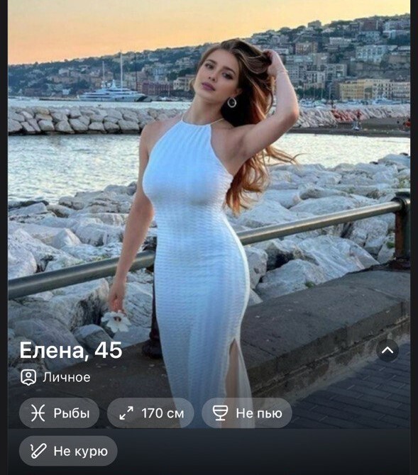4. Ну тут тоже подстава, я считаю. Девушка на ИИ-фото не выглядит на 41. (да и на втором тоже🙂). Но вправо ты автоматически уже смахнул. Я специально раз в пару месяцев обновляю свою фотку на СЗ, чтоб дама сразу видела, с кем имеет дело. Никаких фильтров, никаких обработок. Чтоб потом не припереться на свидание, а тебе заявят - ты не похож на свои фотки. А я уже приехал, время потратил. Оно мне нахуй надо?