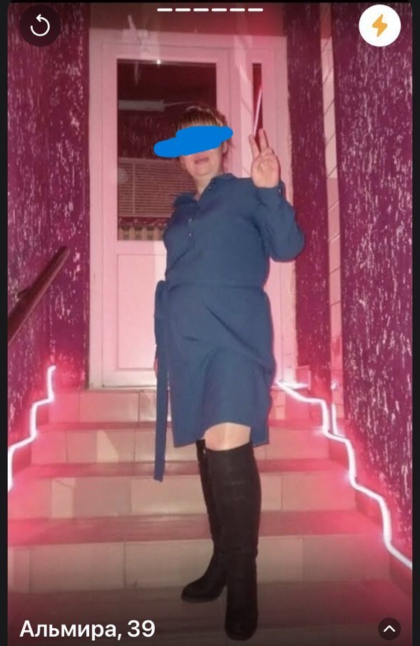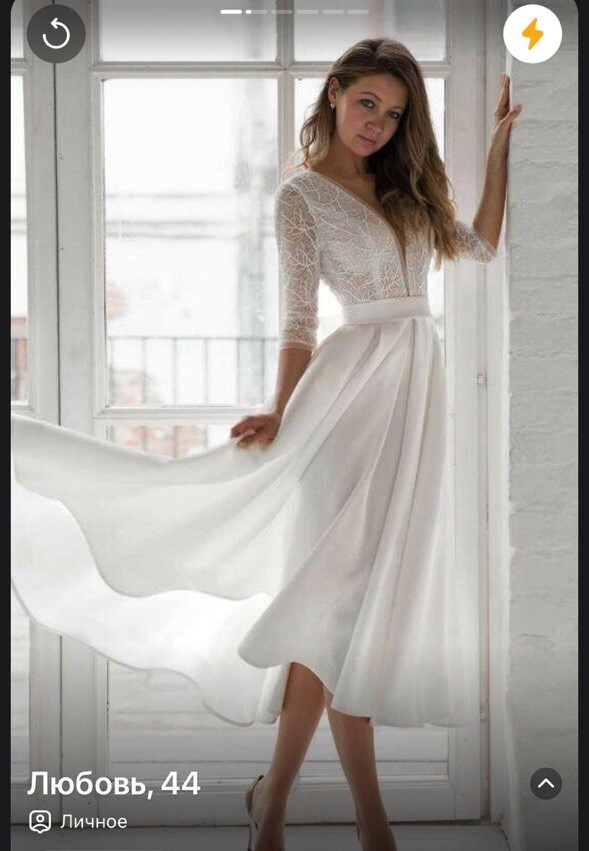 3. Тут что-то непонятное. Водные знаки на фотке. написано про модный бутик...не знаю что это, наверное есть приложуха для подбора одежды и "лука". Тем не менее, как мы видим, девушка абсолютно по-другому выглядит в объективе фотоаппарата. Обратите внимание на полоску вверху - это заглавное фото анкеты на СЗ, по которому ты обычно и оцениваешь, смахнуть вправо или влево. Этож просёр лайка, которые далеко не бесконечные.