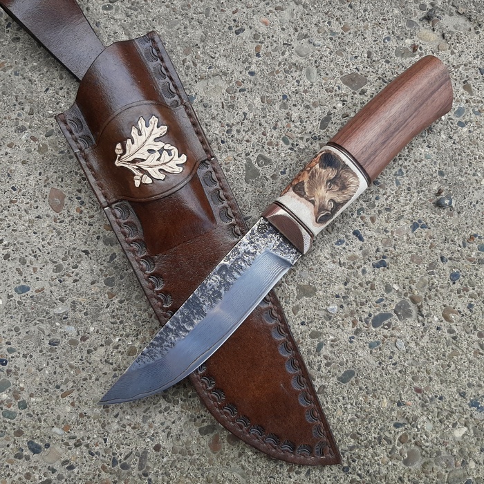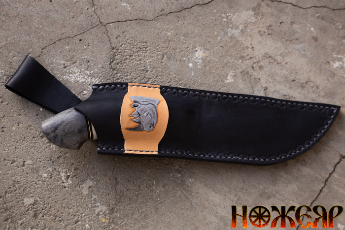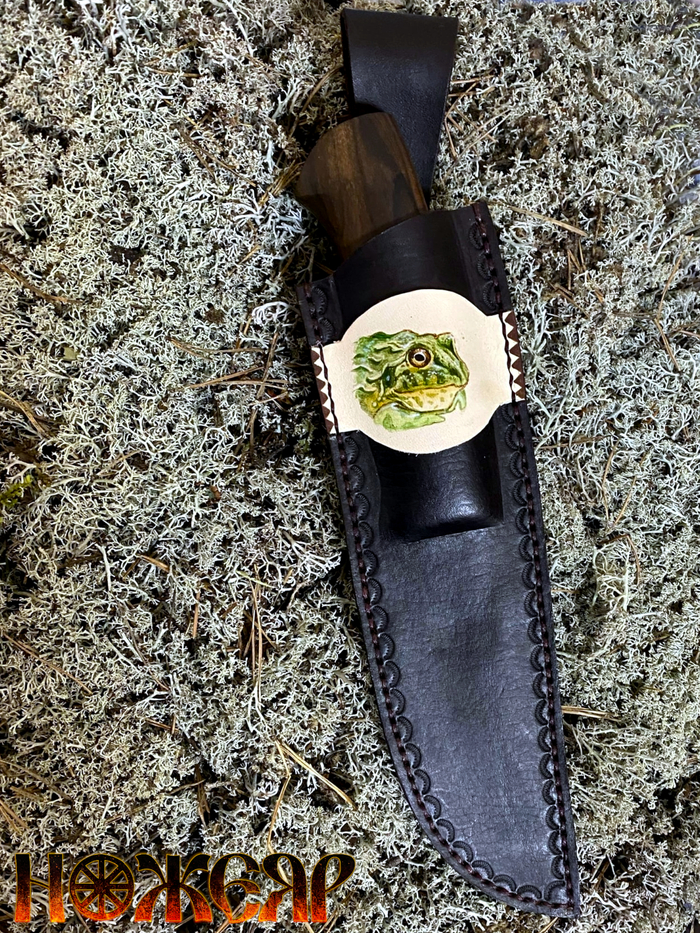 Материал ножен - кожа растительного дубления, тиснение, колорирование стойкими акриловыми красками