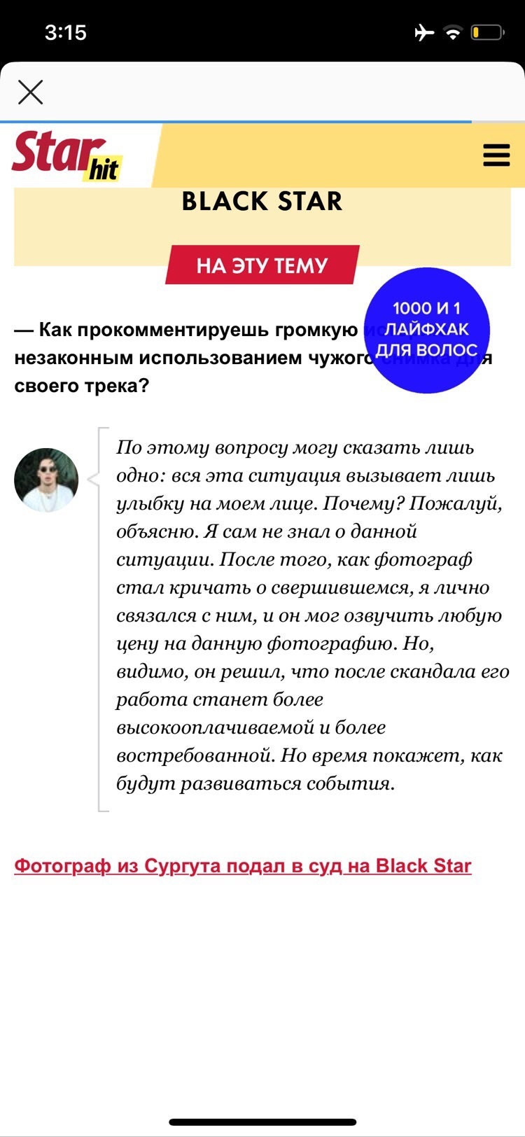 Как только в Blackstar получили письмо из суда, то ребята, которые игнорировали меня до этого момента, сразу же переобулись, удалив фотографию со всех площадок, поняв, что им не вывезти это дело, так как у них нет и не было никаких документов, подтверждающих разрешение на использование моего снимка в коммерческих целях.