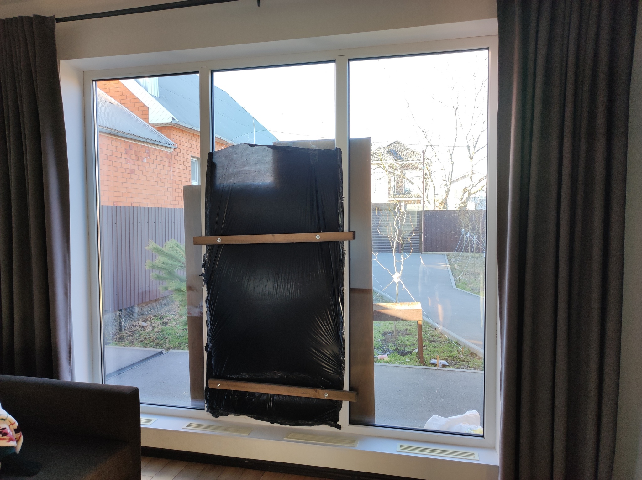 А стекло у нас панорамное, 2,7 метра в высоту, трехслойное. Я вообще не думал что его разбить можно.