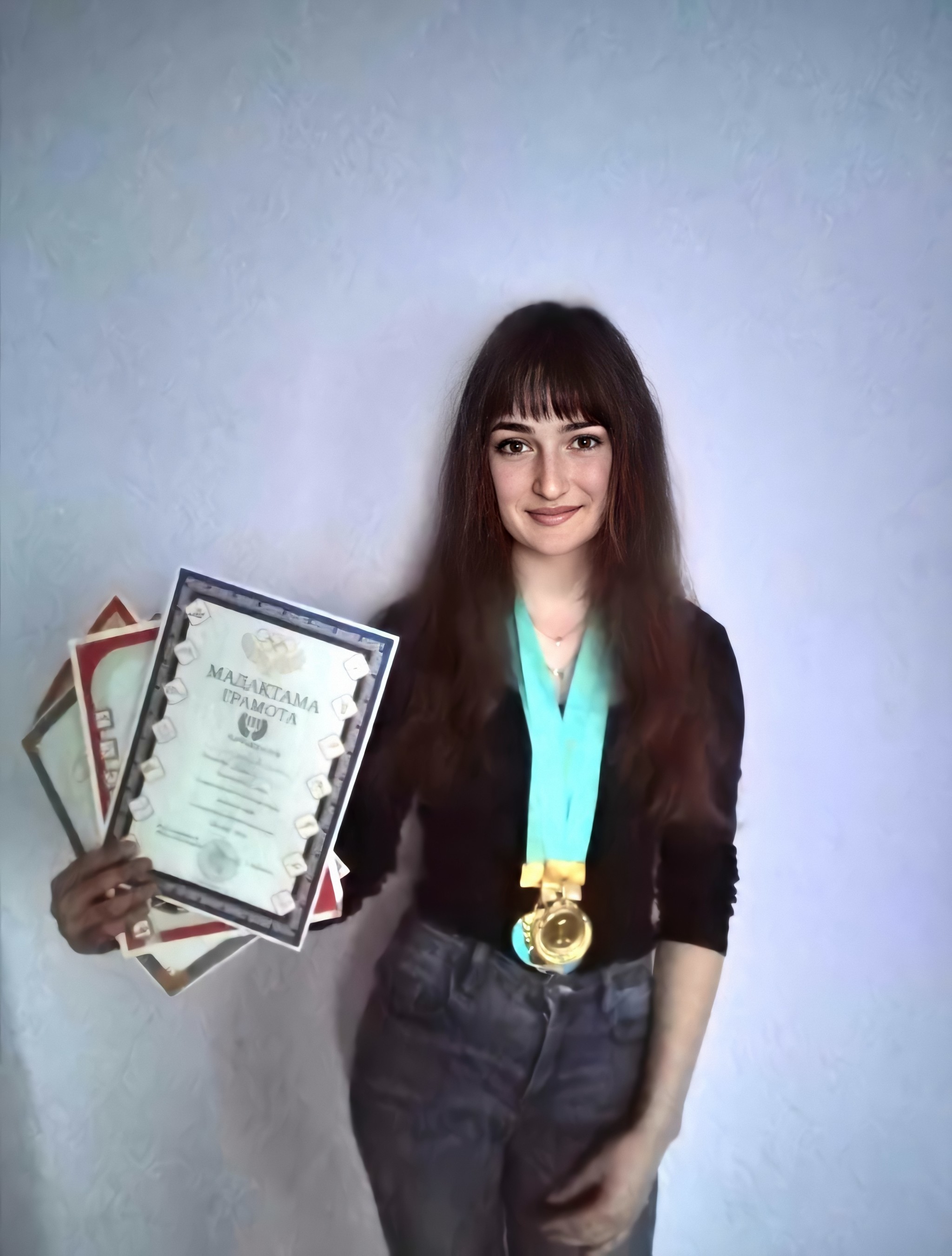 Я на секунду подумал а не лампа ли это... Мол Катюха давай сфоткаю тебя какая ты охриненная и покажешь свои дипломы ты ведь такая скромница. Я ведь тебя всё равно мало вижу...  И вот эта девушка далеко не имеет той силы что писали про толкание ядра 2-е место среди взрослых.... Чуш полная