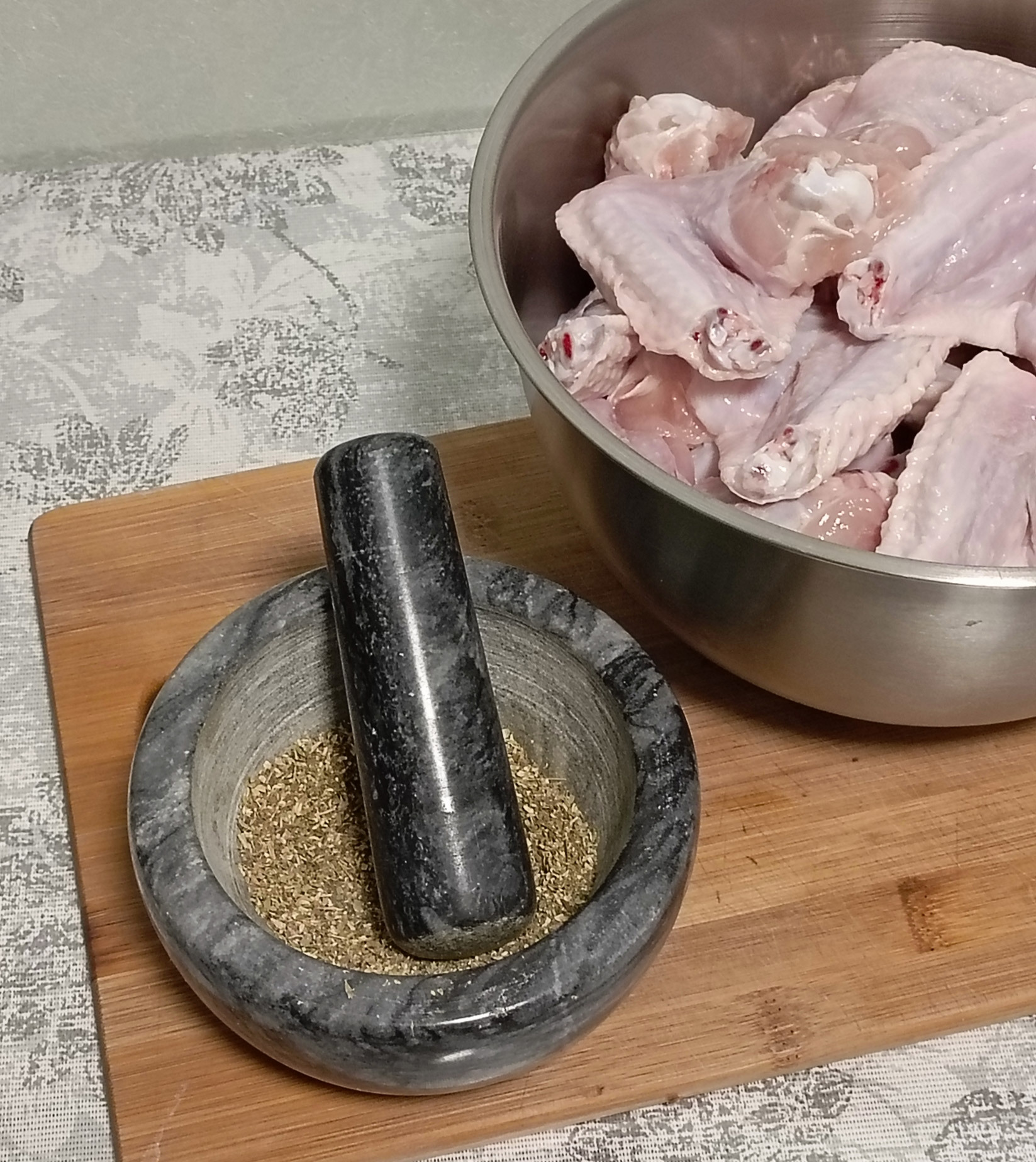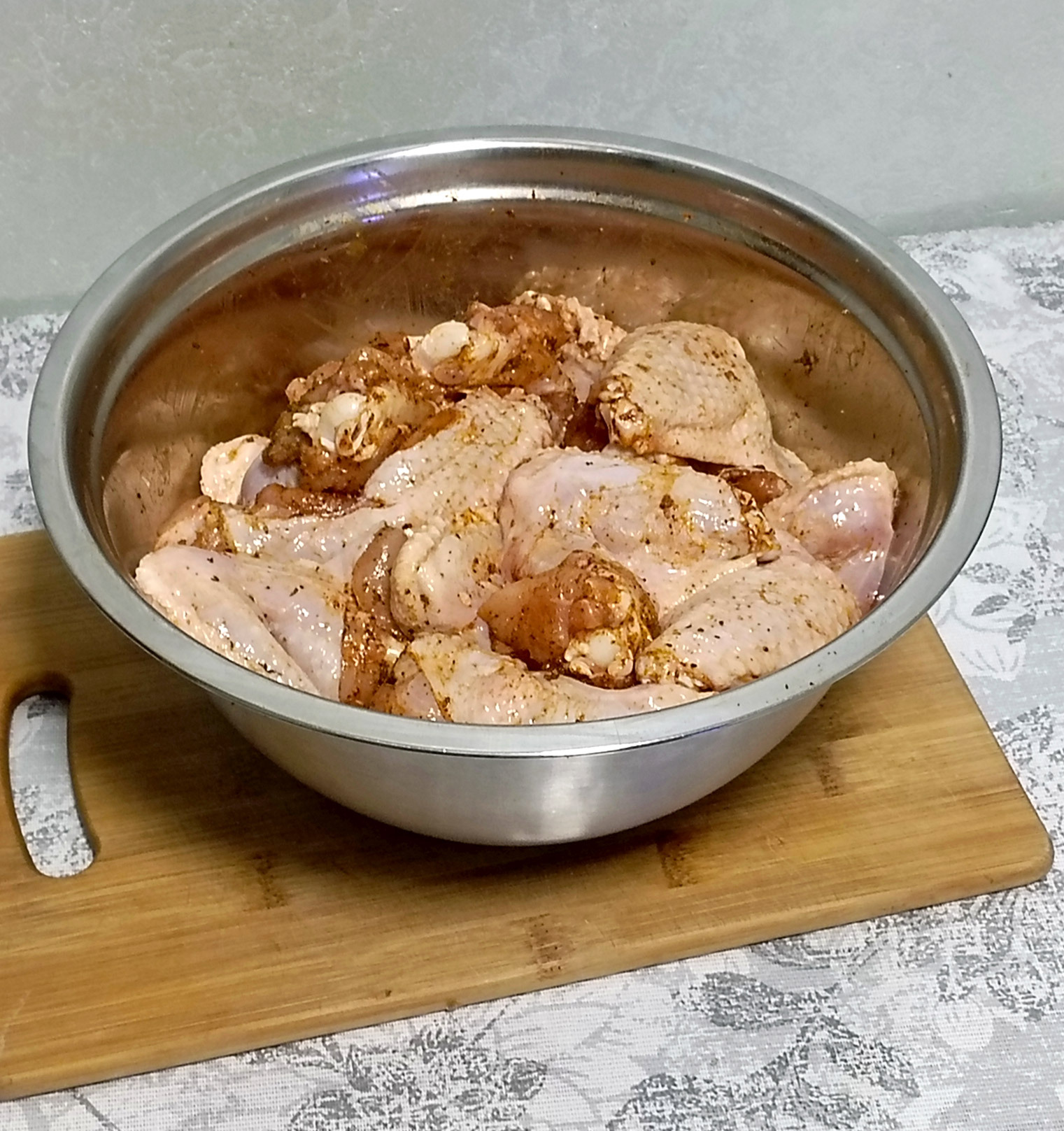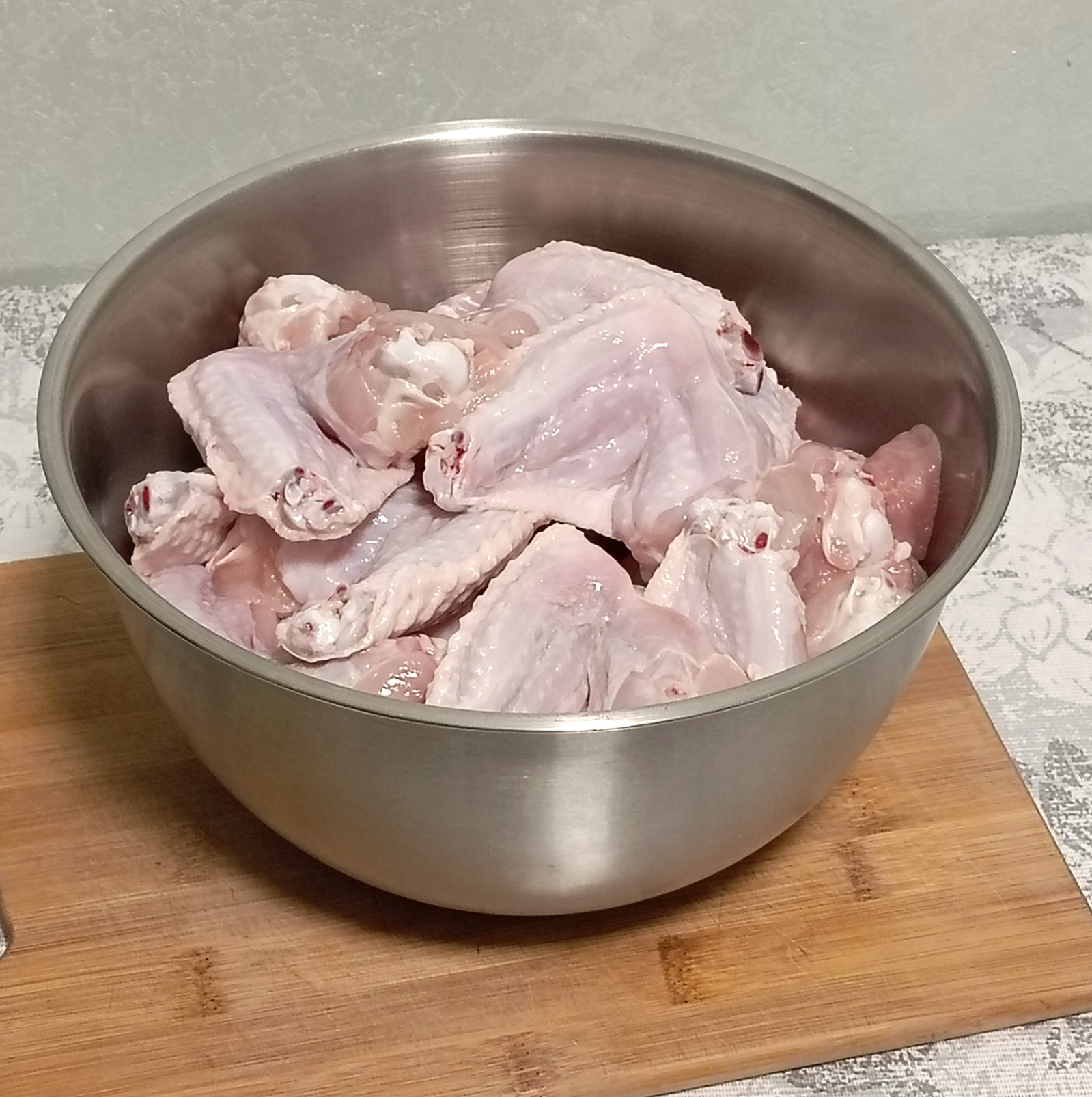 Итак, начнём с курицы. Запчасти могут быть любые — главное, чтобы пролезали в банку. Кожу снимать не нужно. Грудкой не увлекайтесь, оставьте её ЗОЖникам, лучше всего в банке приготавливаются голени, бёдра, крылья. Мне вот в крайний этот раз достались именно крылья.