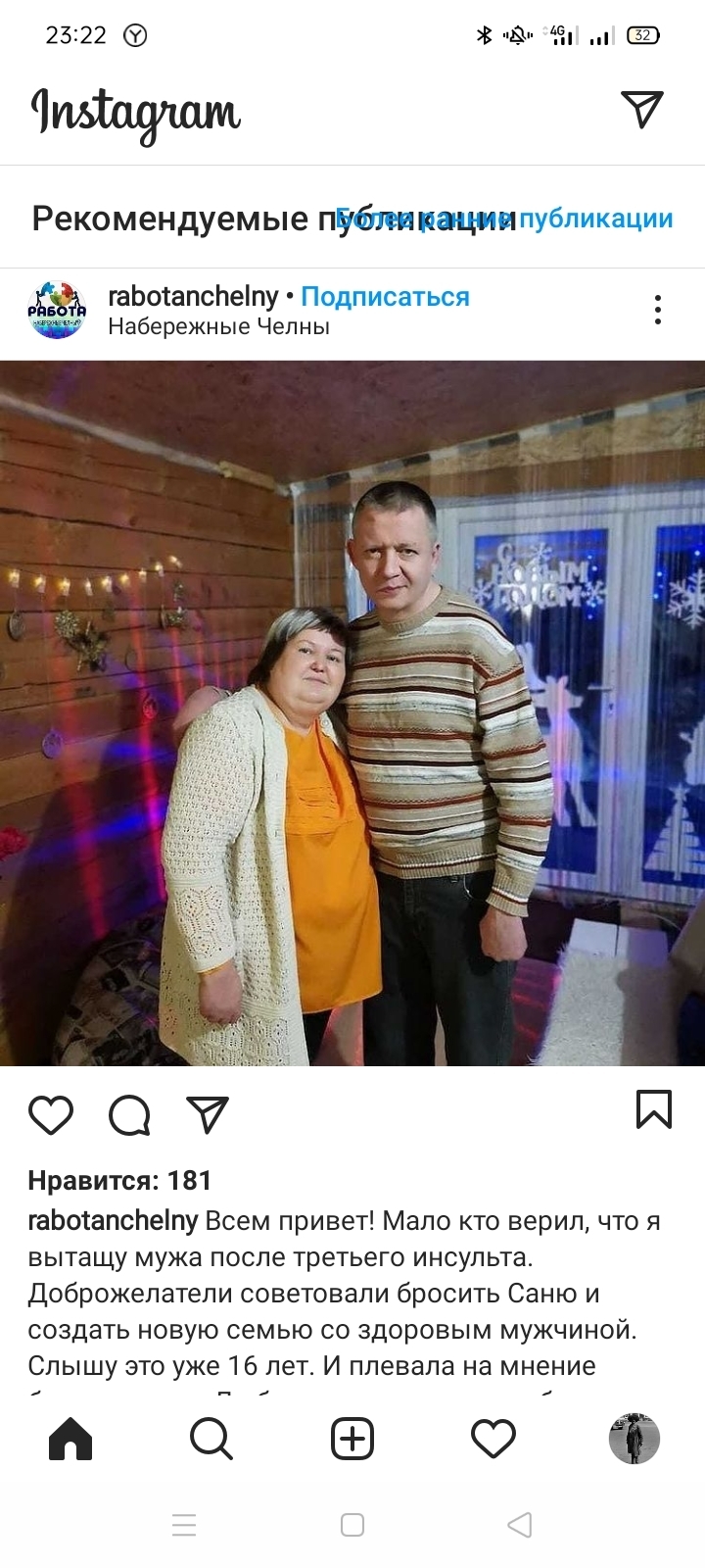 Мало кто верил, что я вытащу мужа после третьего инсульта. Доброжелатели советовали бросить Саню и создать новую семью со здоровым мужчиной. Слышу это уже 16 лет. И плевала на мнение большинства. Любовь есть и она способна творить чудеса! Главное верить и идти вперёд не оглядываясь назад! Миром правит любовь! Будьте счастливы, друзья!