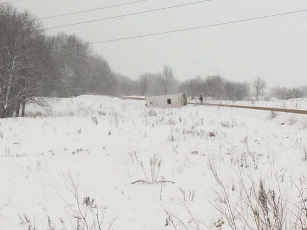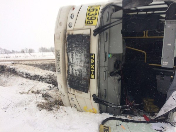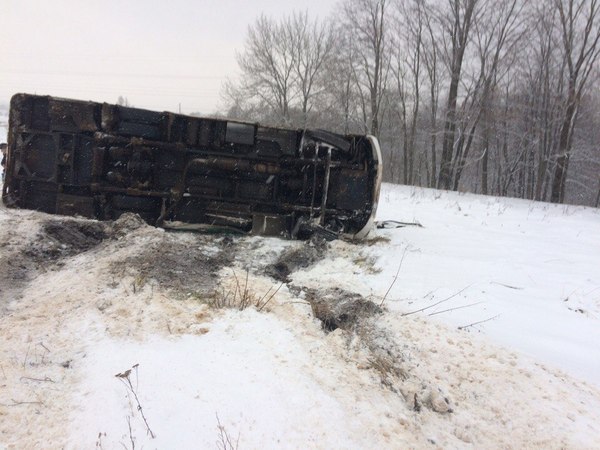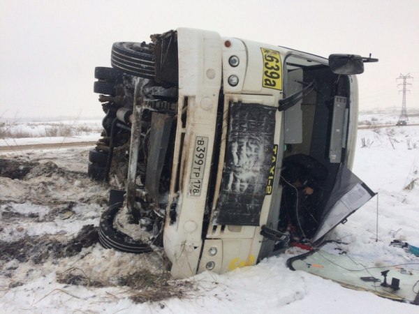 Если вкратце, то видитель не придумал ничего лучше, чем по гололеду и снежной каше ехать со скоростью 100 км/ч. В результате - занос сначала вправо, а потом влево за пределы проезжей части и набок. Из пассажиров никто сильно не пострадал, в основном ушибы и ссадины.