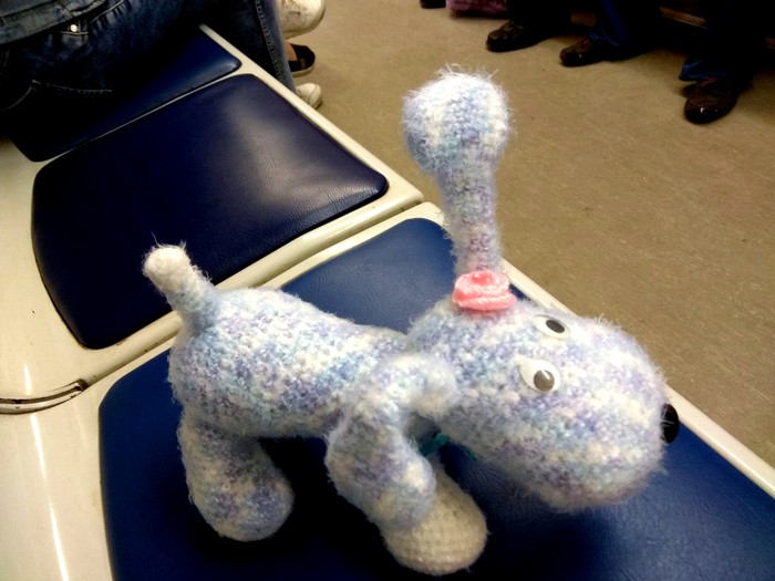 Привезла я её на работу к женщине, которая попросила связать щенка для своей племянницы. У племяшки скоро день рождения - целых 5 лет исполнится. Вот на этот день рождения Роксану и повезут в другой город. (Если я не путаю, то в Пермь собирались увезти).