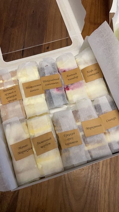 Вот для примера жене ее кондитер (сотрудничает по мероприятиям и праздникам, которые организует) прислала очередной набор пробников. Поверьте, все начинки более чем вкусные. И каждый найдет себе по вкусу, сладости, сочности и т.д.