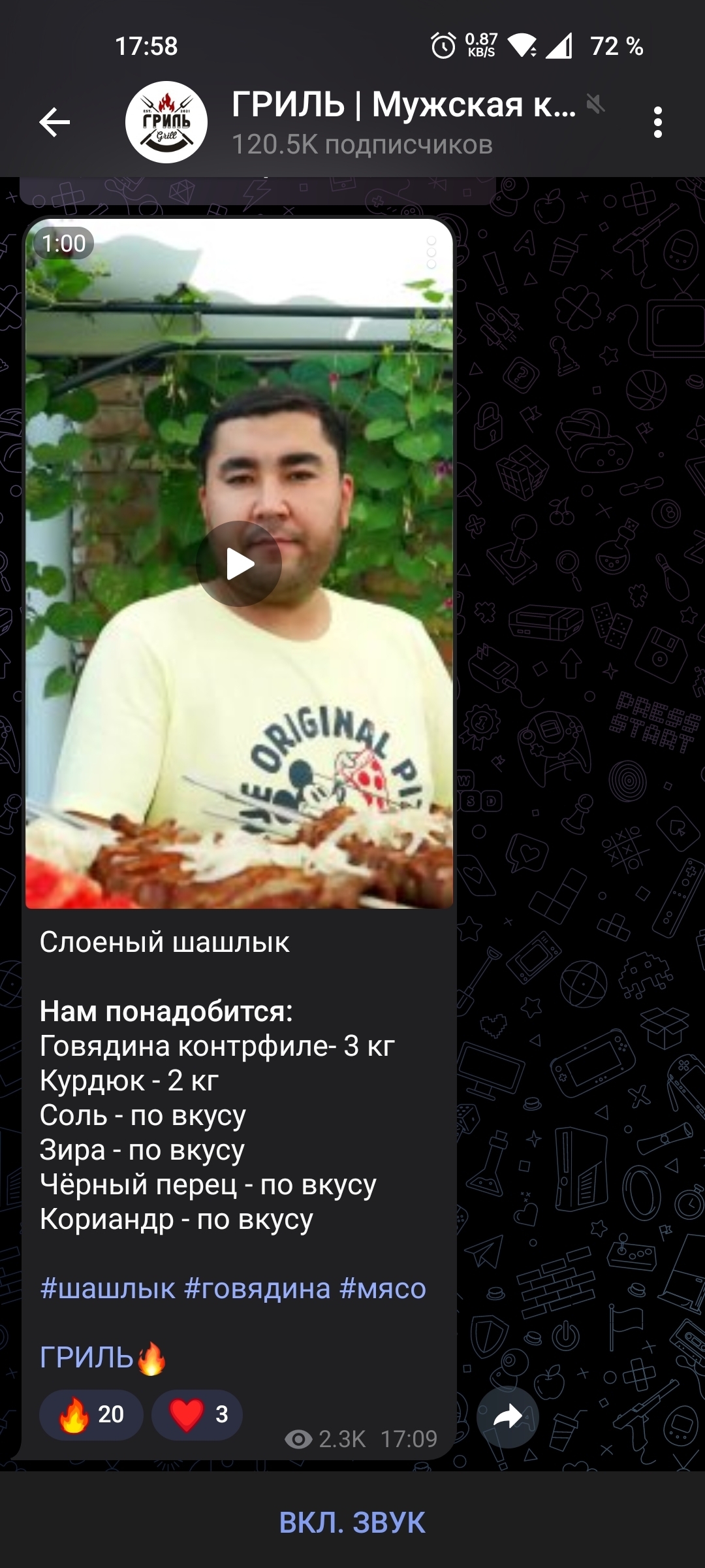 С вашего позволения первый пост с коротким роликом приготовления слоеного шашлыка!