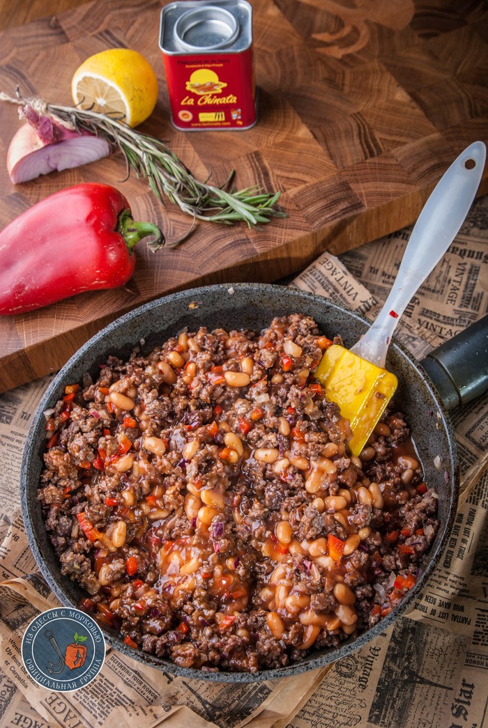 - Если жидкости в фасоли было мало и содержимое сковороды вам кажется сухим- добавьте пару-тройку ст.л. воды или томатного сока. Вся эта консистенция должна напоминать густое рагу или пасту.