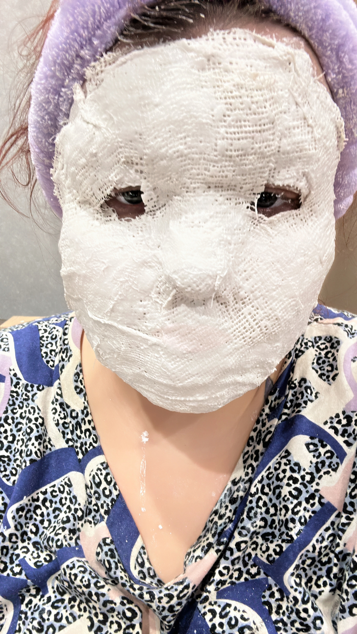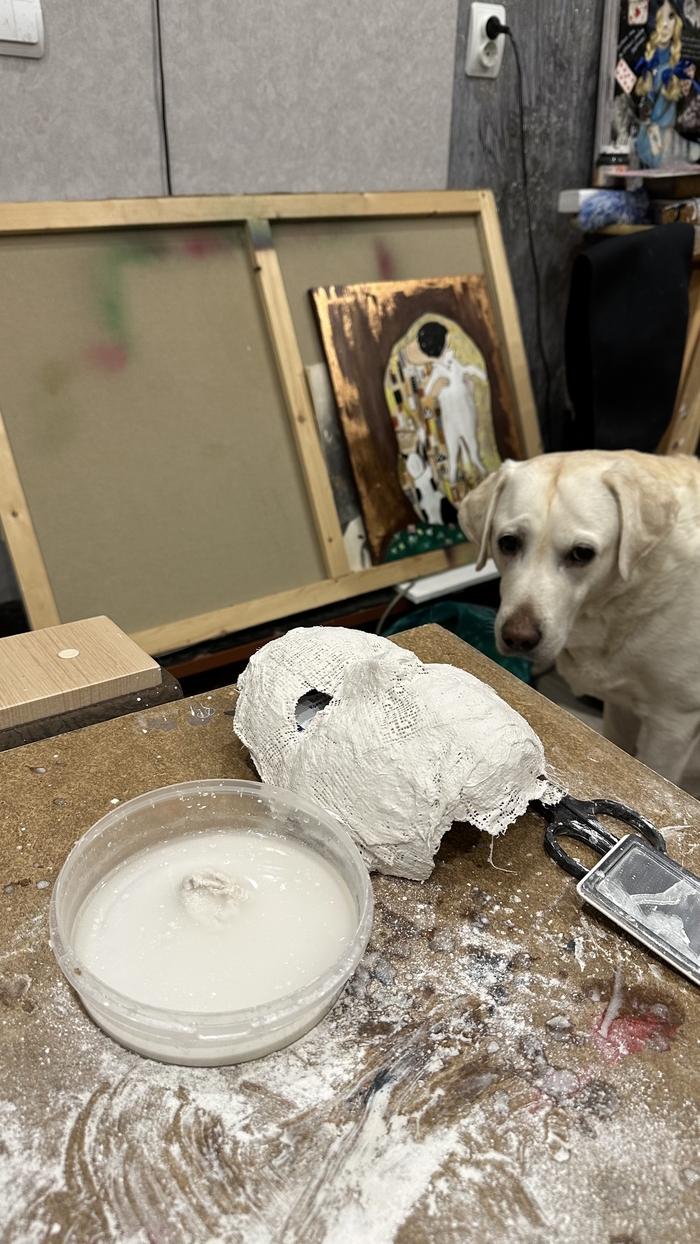 Если вы такие же неаккуратные как и я, то не забудьте надеть самую страшную свою футболку. Накладывайте бинты равномерными слоями , пока не почувствуете тяжесть от гипсовой маски.