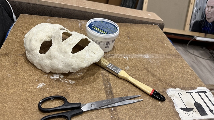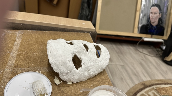 И покрываем первый слой маски. Не забывайте открывать окна, иначе приблизите себя ко встрече с пришельцами. Как только покроете первым слоем, дайте подсохнуть , и снова пройдите тенями по маске. Затем нанесите второй слой