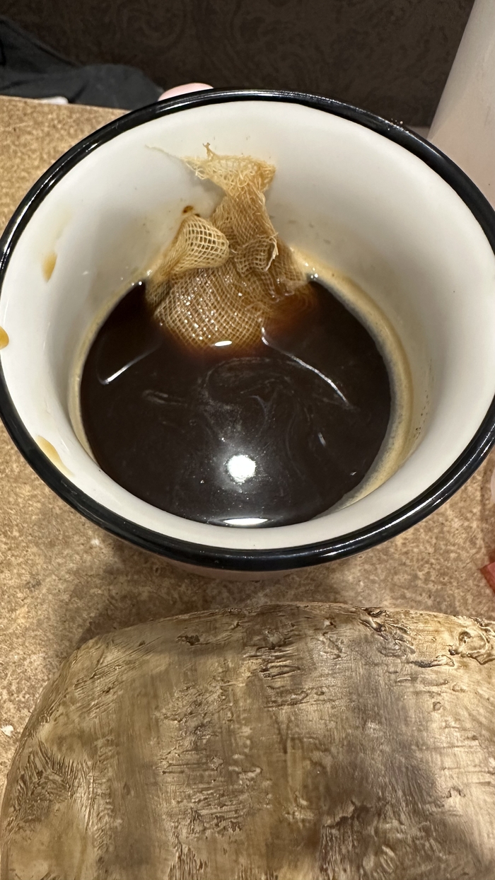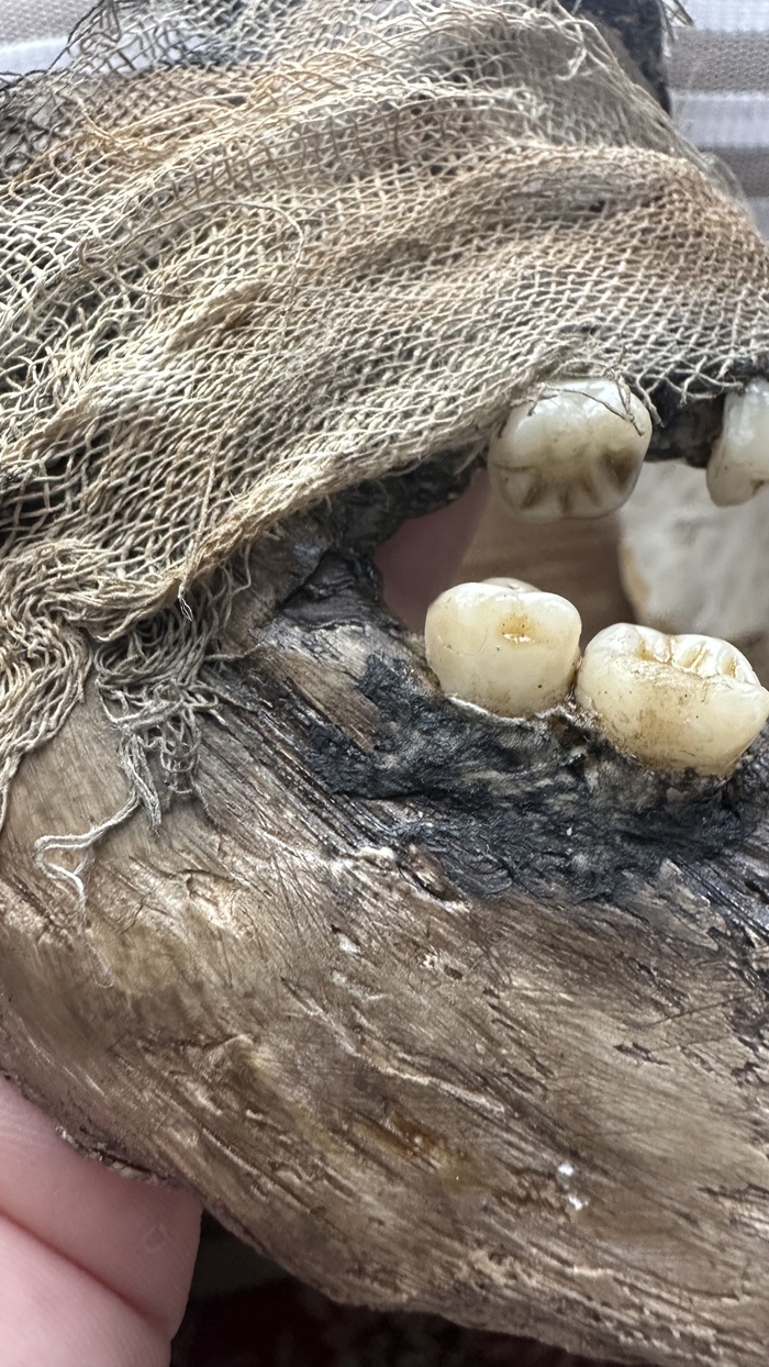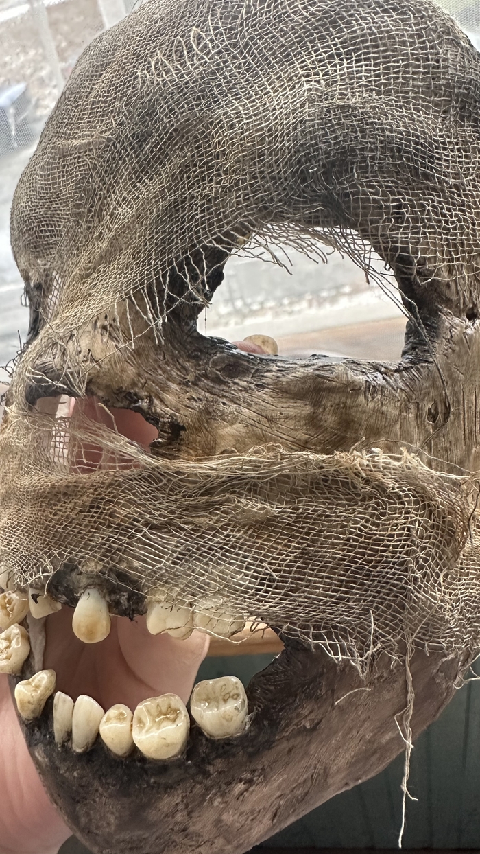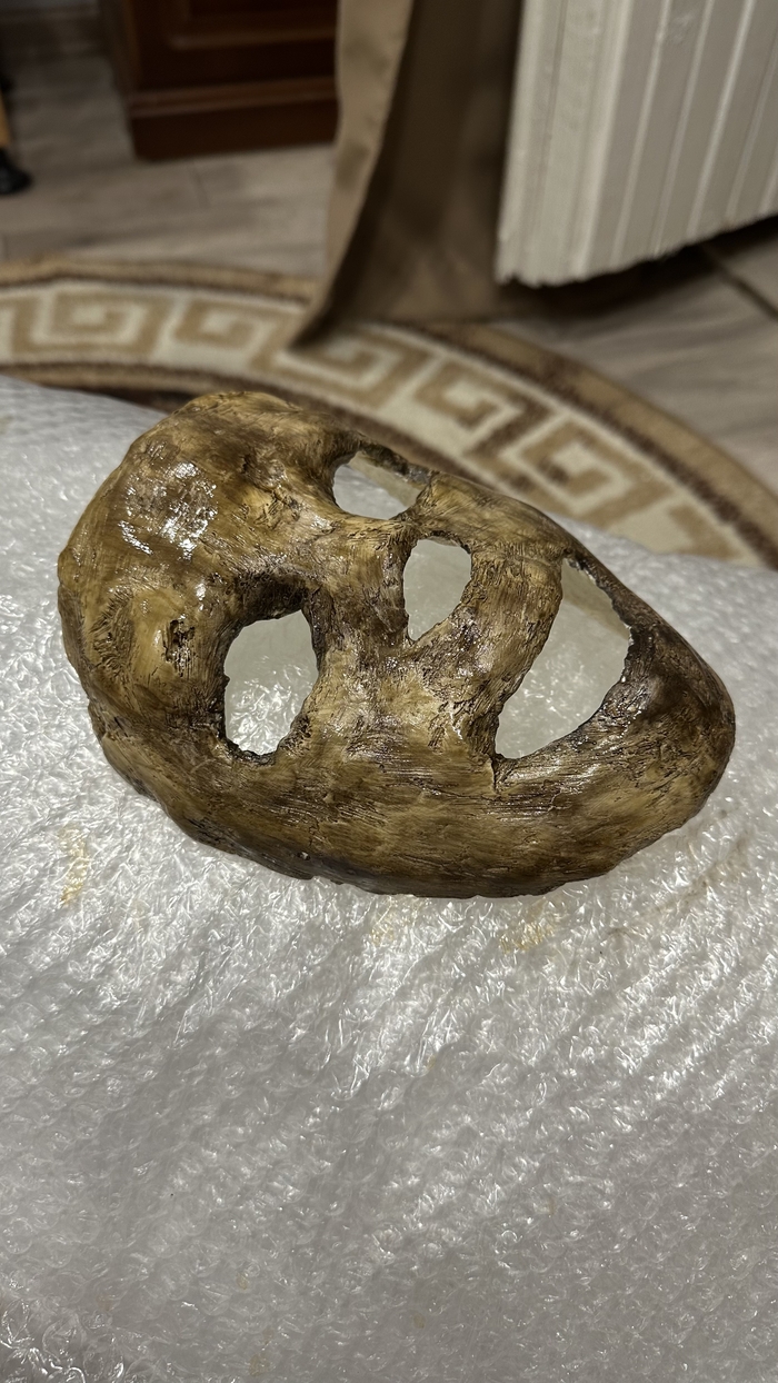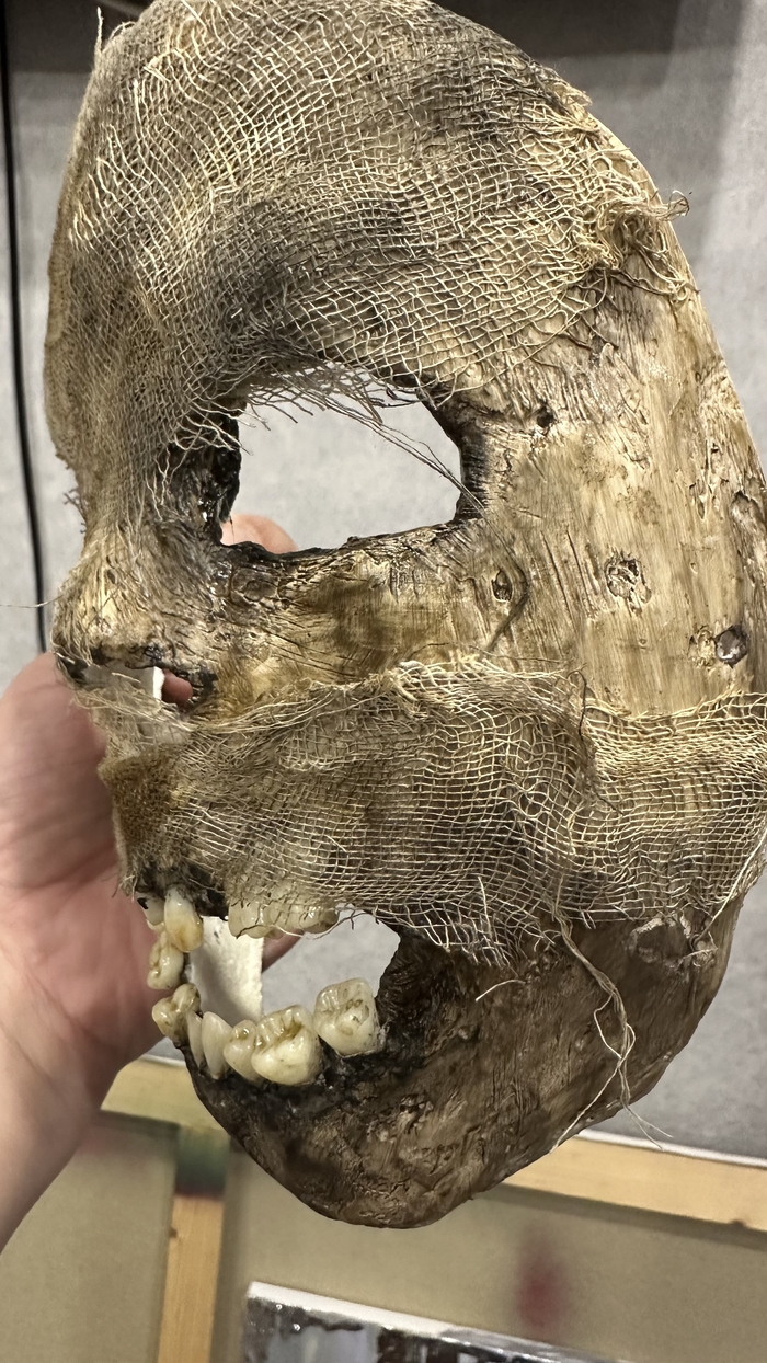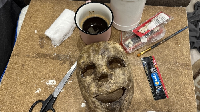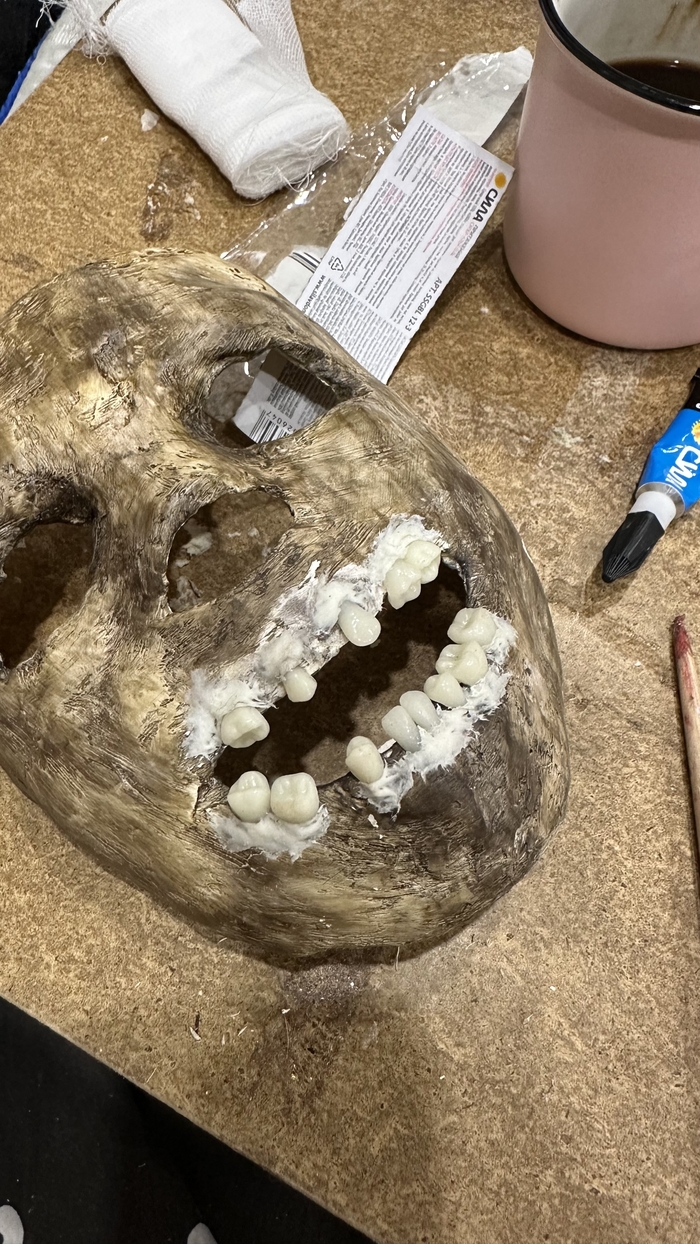 Далее начинаем украшать нашу маску,для этого берем бинты,кофе и зубы ( не спрашивайте где взяла - лет сто назад нашла на Али ) , но их можно и самим вылепить с остатков массы.