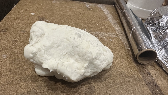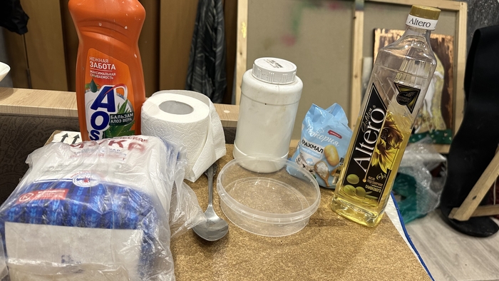 Плотную массу можно взять в руки и продолжить по кусочкам добавлять бумагу. Затем в полученную массу вливаем пол ложечки жидкости для мытья посуды и ложечку подсолнечного масла. Все перемешали, пожамкали. На глаз насыпали немного крахмала , может ложки две столовые. Перемешали. Затем начинаем постепенно вводить муку, замешивая тесто . Добавляем муку до того момента, пока масса не станет эластичной и плотной.