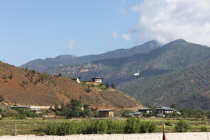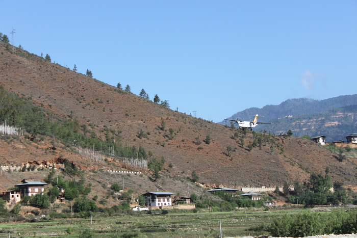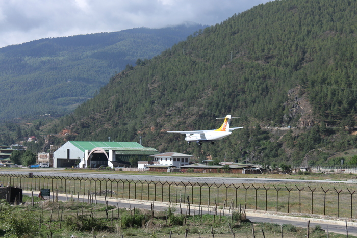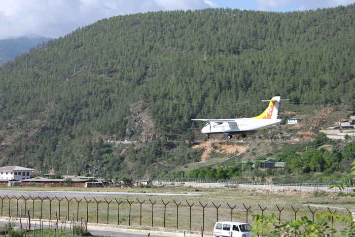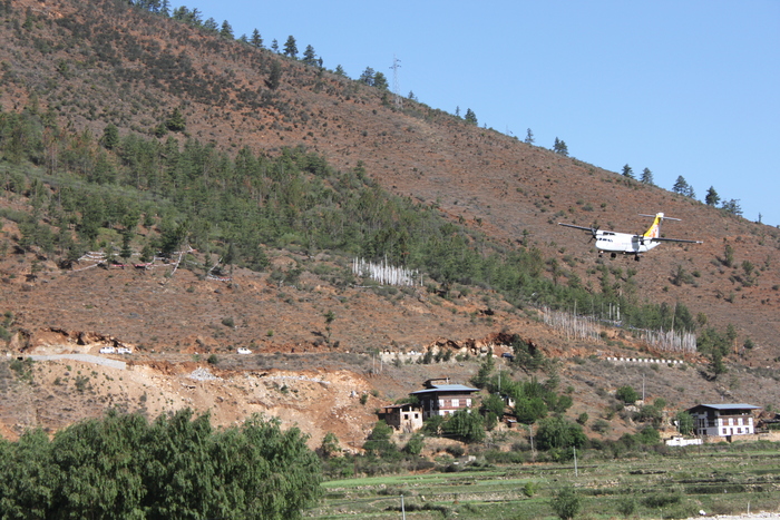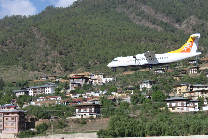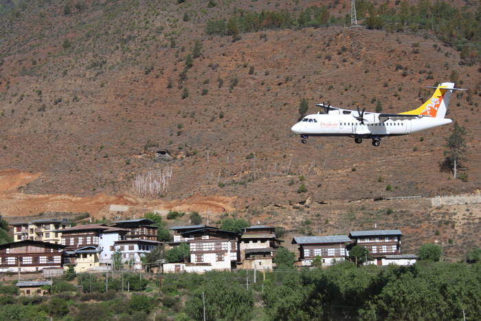 ATR 42-500 A5-RGH аваикомпании Druk Air (Бутанские авиалинии) заходитна посадку в аэропорту Паро. считается довольно опасным аэропортом на высоте 2244 м.