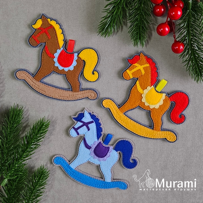 Пока шила этих очаровательных коняшек, полностью погрузилась в атмосферу праздника!🎀 Они получились такими яркими, по‑новогоднему нарядными — и так напоминают о волшебстве детства!