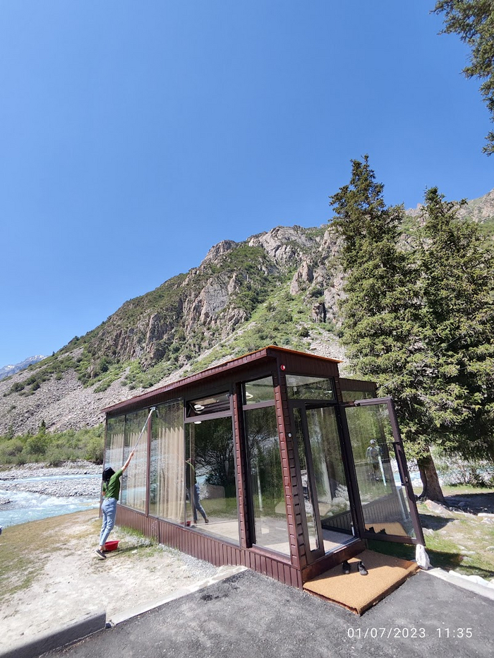 Мне сказали,что это офис местного бизнесмена, который для работы, в горы провел интернет. Мне кажется в таком красивом месте это издевательство работать)))