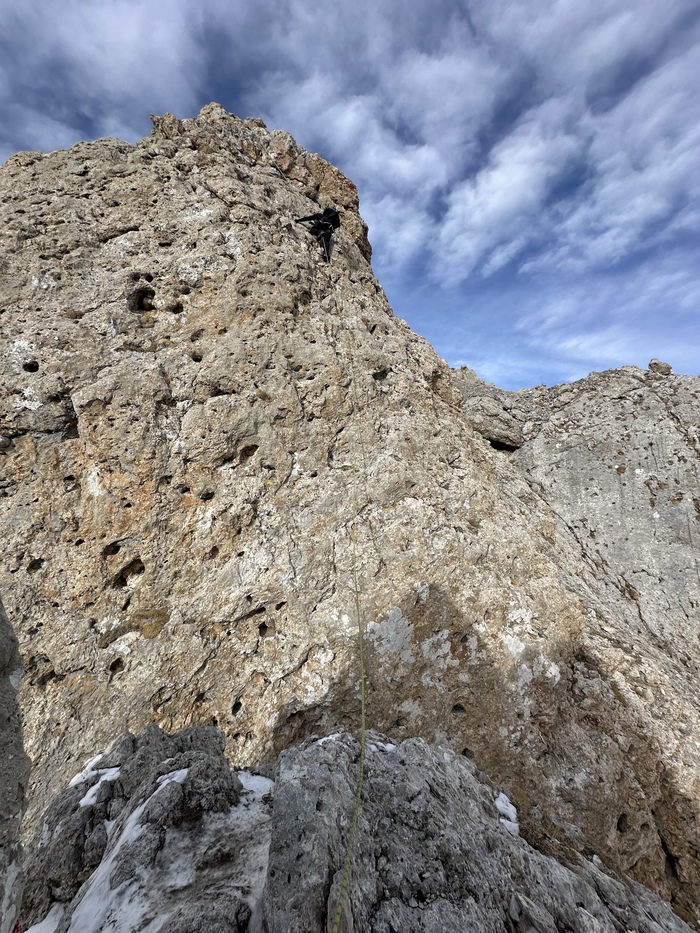 Элизабет спустив товарища до высоты 7250м и оставив его в спальном мешке в трещине, с огромным трудом продолжает спуск дальше.