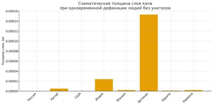 Толщина слоя — при одновременной дефекации всех людей без унитазов, если равномерно размазать по стране: