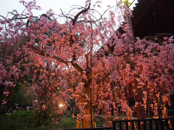 Ночью работает подсветка. Несмотря на то, что в позднее время храм закрыт, можно спокойно гулять по территории, купить предсказание, помолиться и просто осмотреться - впечатляющие вечерние виды того стоят. Плюсом ко всему вечером там практически нет туристов.