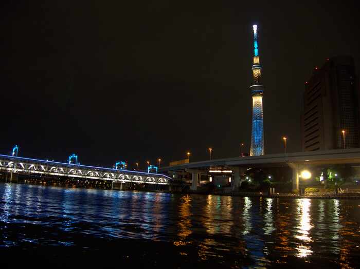 После Сенсо Джи мы расстались с нашими друзьями, которые уехали домой, но сами мы возвращаться не спешили. В пешей доступности - набережная реки Сумида, прибрежные парки и шикарный вид на Скай Три с подсветкой. Эти места в итоге стали моими самыми любимыми в Токио, наверное, потому что были первыми достопримечательностями, которые мы здесь встретили. Около часа ночи мы отправились домой.