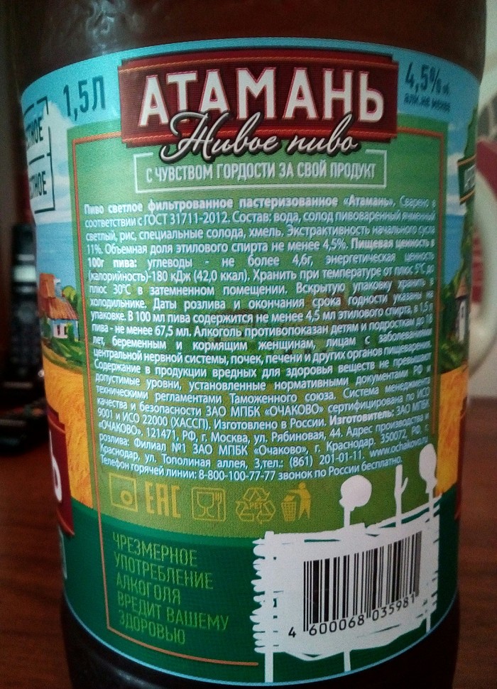 Сделано, как и пара предыдущих на краснодарском заводе Очаково.