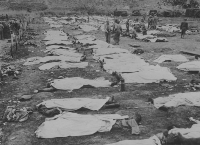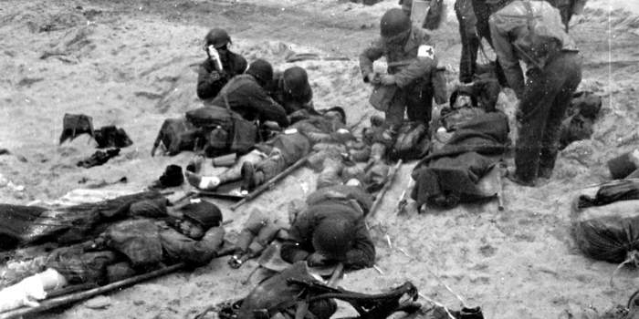 Тела американских солдат, убитых в районе высадки «Омаха-бич» в Нормандии
