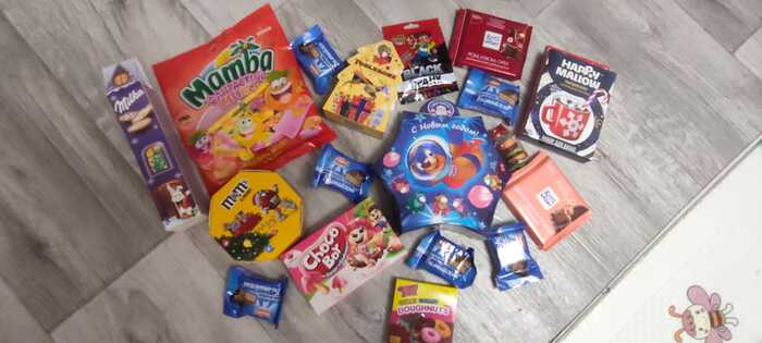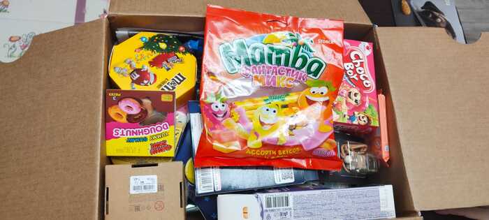 А под ним конфеты конечно. Посылку открывали пока дети спят - сладости заныкали под ёлку. Может и до Нового года долежат 😊