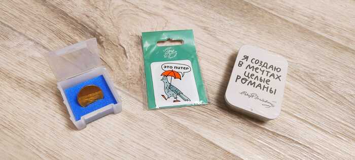 Мне очень понравился жетон для метро, а жена отжала конфетки и магнитик.