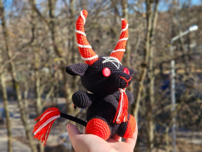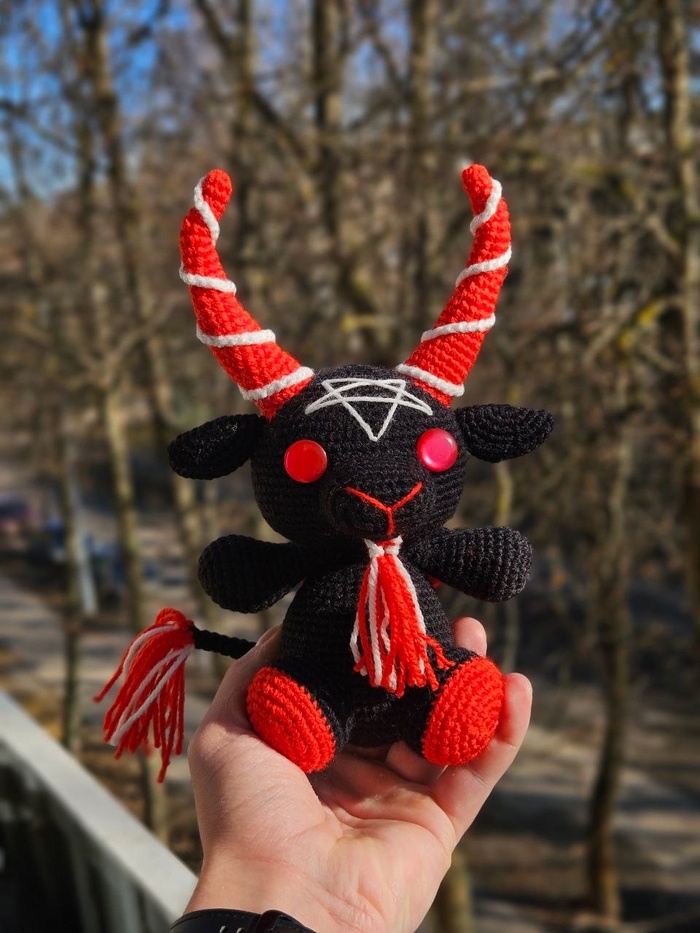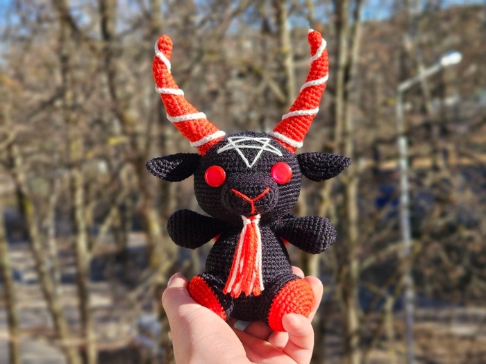Бафометики маленькие. Тело связано из плюша, рога из хлопка.