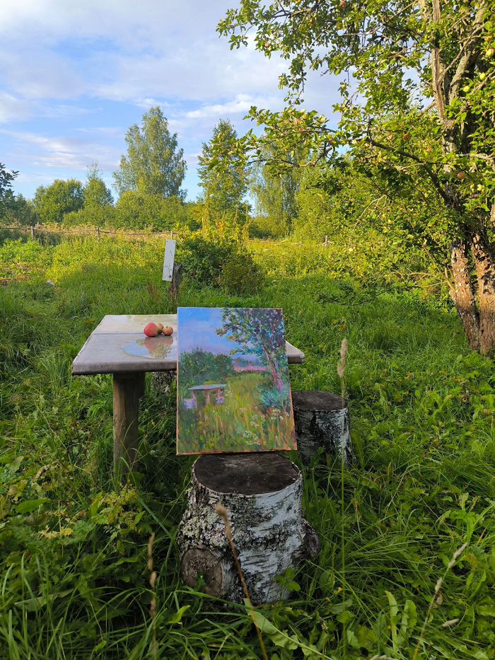 [моё] Деревня Картина маслом Живопись Яблоня Пейзаж Авторская живопись Картина Тверская область Бежецк Длиннопост Пленэр