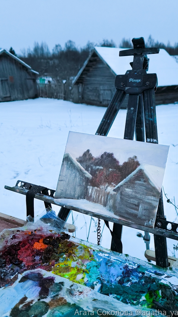 Т е как вышло: мои зимние пленэры пришлись 1-2 ноября и на 17-22 февраля. И всё)) В Москве ни разу я не взялась на пленэр... Корю себя😖