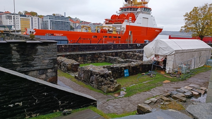 Крепость Bergenhus, тоже на ремонте, как же без этого.