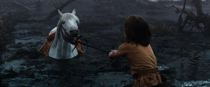Казалось бы, сцены, в которых Атрейю и Артакс проваливаются в Болота Печалей, и так достаточно тяжелы, чтобы оставить эмоциональный след у зрителей. Однако десятилетиями ходила ужасная легенда, будто лошадь на съёмочной площадке действительно умерла.