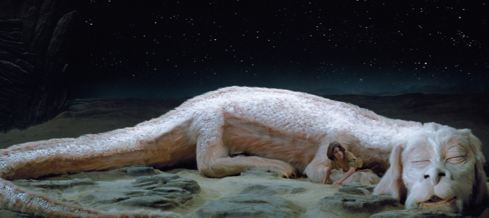 Создание летающего дракона удачи Фалькора началось с миниатюрной резиновой модели, а в результате получилось тринадцатиметровое оснащенное мотором существо. Огромное тело дракона было покрыто более чем 6000 сияющих пластинок из пластика и обито розоватым воздушным мехом. Голова Фалькора была около метра в ширину и высоту с длинным розовым языком из резины и управляемыми на расстоянии глазами.