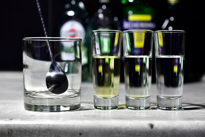2. Налейте 45 мл Бехеровки и 10 мл сока лайма.