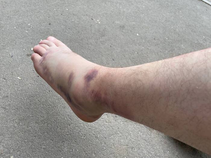 Моя история началась в 2023г. когда я получил травму ноги, обратился в травмпункт ЦГБ. Врач, не проводя осмотр и пальпацию направил на рентген в двух проекциях, был поставлен диагноз – растяжение связок. Но на следующий день состояние ухудшилось, нога опухла посинела (фото прилагаю), после двух недель больничного я обратился в больницу по месту жительства. Там после визуального осмотра моей ноги и после пальпации места травмы врач направил меня на повторный рентген ноги в трех проекциях врач и вынес диагноз - перелом пяточной кости, был наложен гипс.