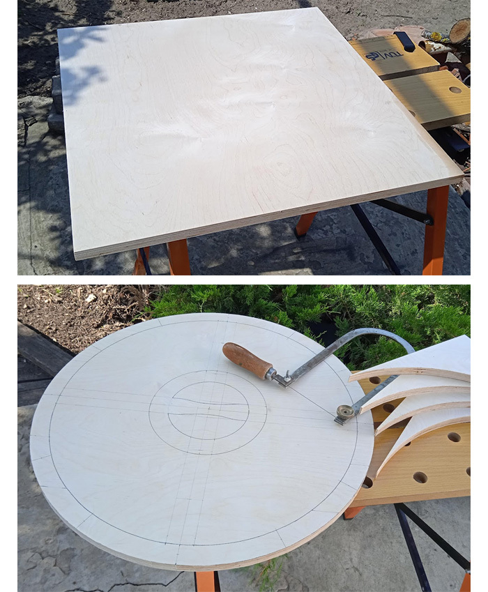 Итак, сам щит выпиливался из квадратного листа фанеры толщиной 15 мм и сторонами по 50 см. В последствии пожалел, что не заказал фанеру большего размера - хотя бы 60 см. Слишком уж миниатюрный щит получился, прям детский можно сказать ((.