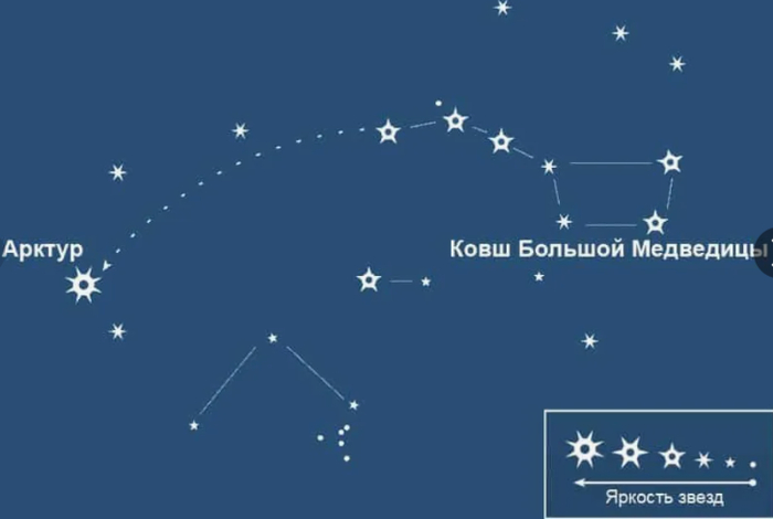 В нём есть рисунок созвездия и подписаны все названия звёзд. Попробуем прочитать названия звёзд «ковшика», может, они нам что-то подскажут?