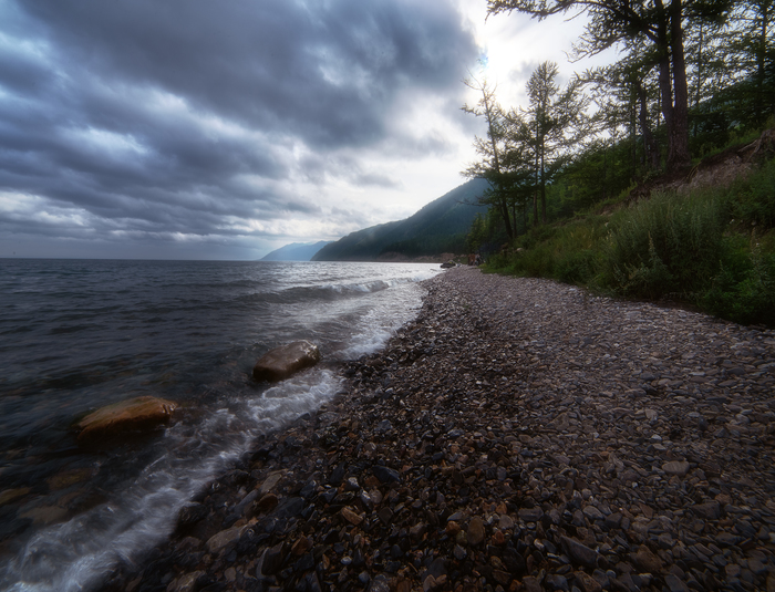 А вокруг красота! Здесь по берегу проходит Большая Байкальская Тропа и с воды эта часть кажется очень живописной.