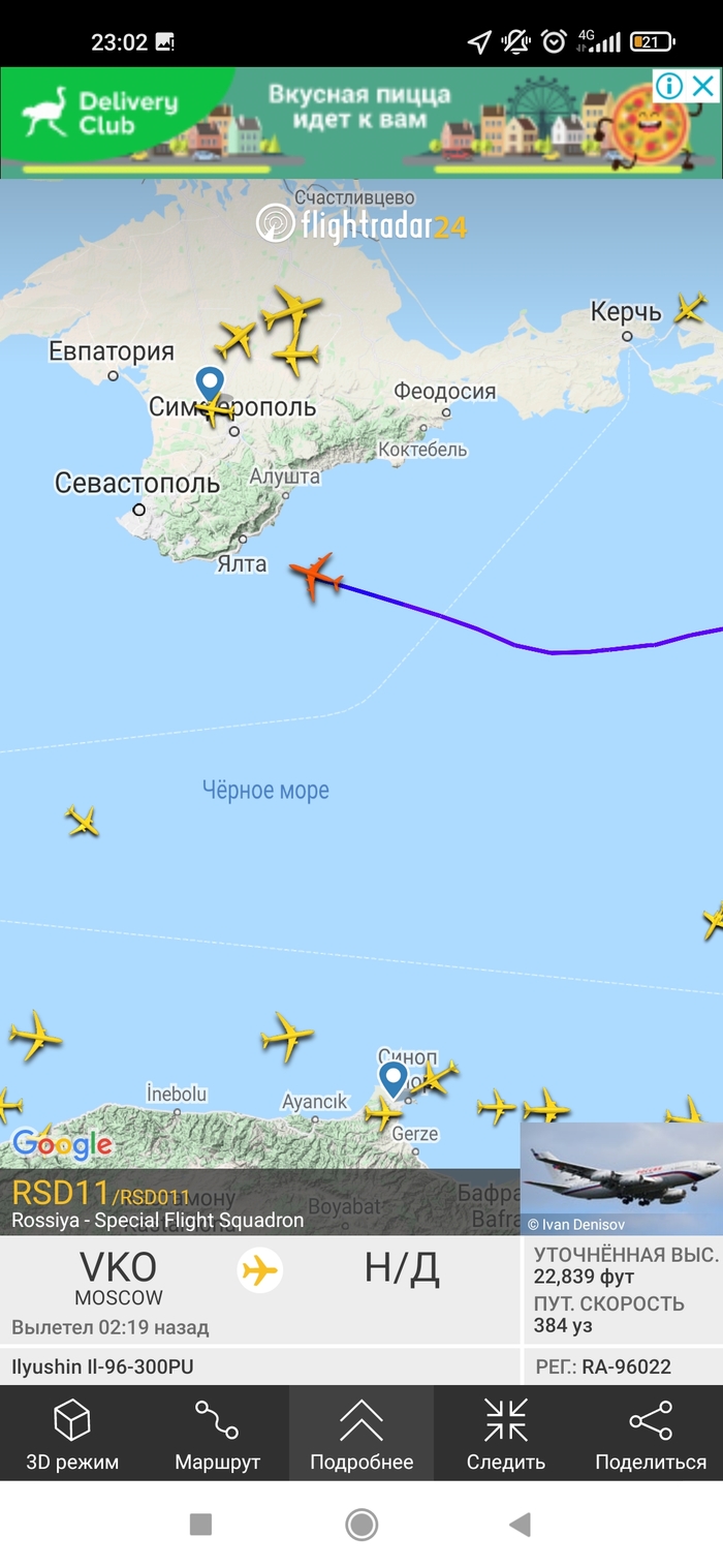 [моё] Flightradar24 Скриншот Борт №1 Крым Длиннопост
