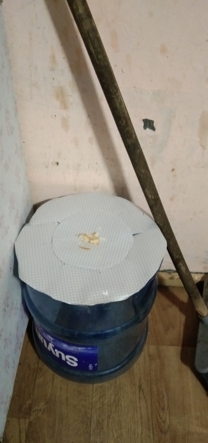 ВАЖНО! Не кладите большой кусок! Мышь сцука хитрая, может его как-то ловка спиздить и будет несколько дней жрать его в подвале и там радостно носиться, не давая вам спать. И, так же, этот кружок должен очень легко проваливаться. У меня мыши полёвки, очень лёгкие.