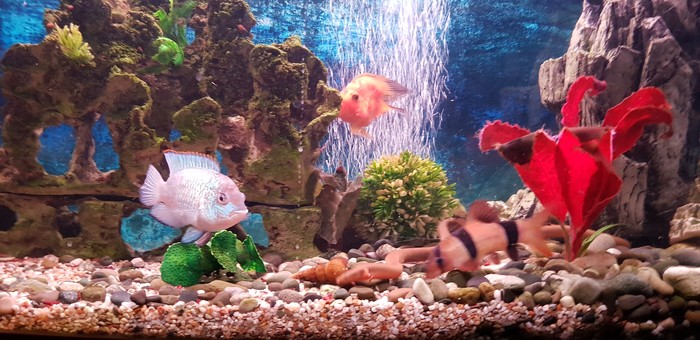 Боции как и вьюны ведут донный образ жизни и в основном имеют маскировочный окрас (например, неприметная на фоне гальки мраморная боция на видео выше), чтобы оставаться невидимым для хищников. Но есть ярко окрашенные боции, и самой красивой и при этом самой крупной считается боция-клоун. В природе она может вырасти до 30 см длиной! Мне удавалось вырастить боций-клоунов до 25 см в огромном аквариуме океанариума.