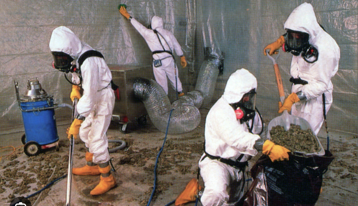 Про вред асбеста и кровохарканье я тогда ничего не знал. Тем не менее, (хвала богам!) по совету армянина, повязывал вокруг головы футболку, на манер ниндзя. Большинство трудяг работали без всяких запариваниях на респираторы и (тем более) одноразовые защитные костюмы. Когда Гуглиш картинки про асбест, то там все в химзащите.