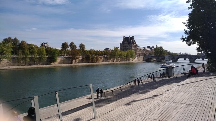 Париж, вид на Лувр с набережной Валери Жискар Д'Эстена.