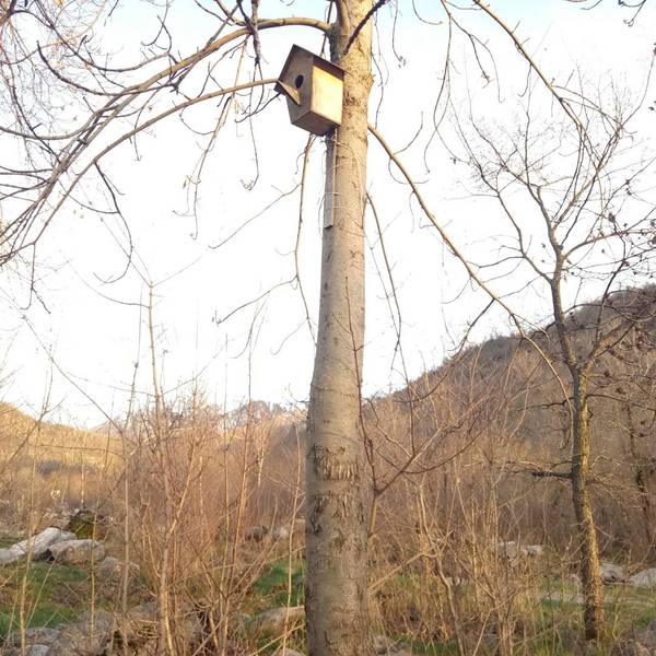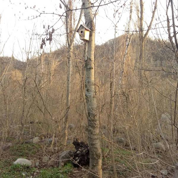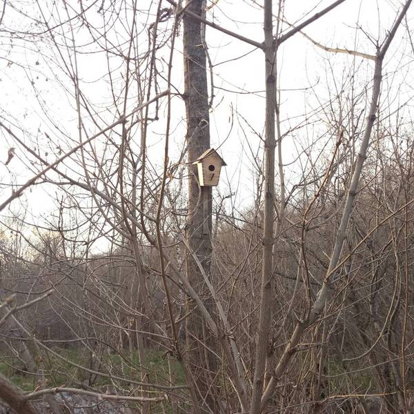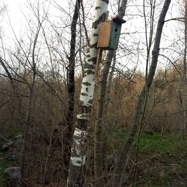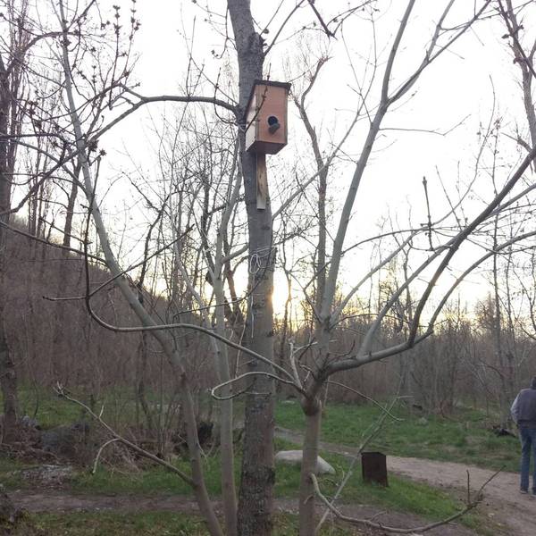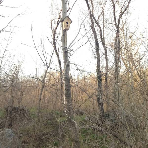 Алматы, Бутаковка... хороший человек делает скворечники и устаналивает в ущелье Медео.