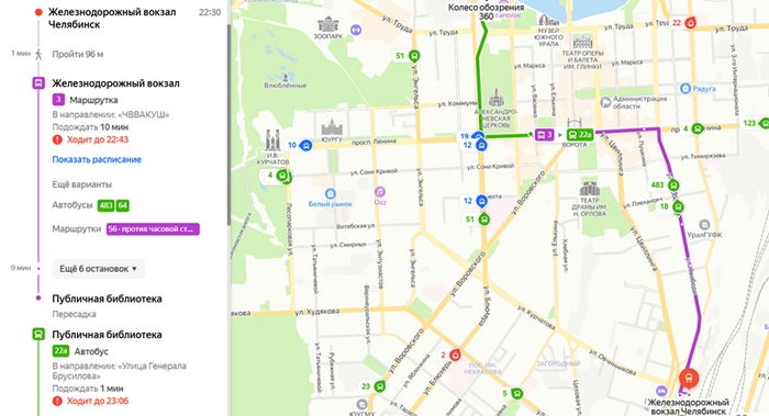 В Челябинске мы жили прямо напротив ж/д вокзала, поэтому, до центра добирались на общественном транспорте. Мы уже знали, что валидаторы могут печатать квитанцию за проезд. И, что можно оплатить за двоих одной банковской картой. Чего мы не знали, это того, что водители маршруток (опять-таки, косящие под рейсовые автобусы) могут не принимать к оплате банковские карты, ссылаясь на неработающие терминалы и требовать оплату наличными или переводом на телефон. Также, мы узнали такое явление провинциальных городов, как «раннее прекращение работы, в связи с низкой загруженностью». Вот, прямо так нам и было сказано. «Яндекс» и «2ГИС» показывают, что должно быть ещё два автобуса по расписанию, а их, по факту, нет. Время было 21.30, центр города. А, ещё, люди жалуются, что водители могут отключить GPS и транспорт не будет виден в приложениях.
