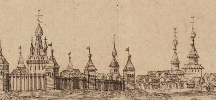 Прилагается гравюра Тобольска, на куполах церквей на самом верху находится Луна, а под ней кресты с косой перекладиной: