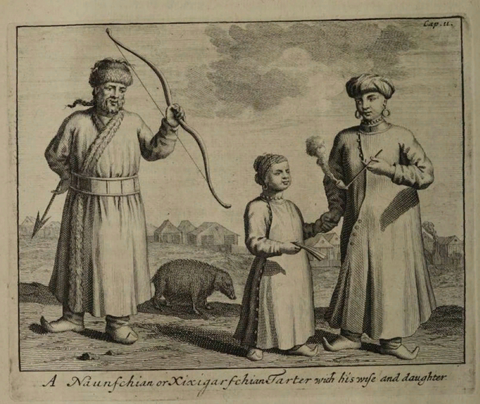 Принца тамошней Тартарии звали Алтанай Кутсьюмович, его внук жил в Москве. А вокруг Тобольска живут Магометяне, их главный священник носит тюрбан на голове и читает на арабском языке, чтит Аллаха (с.12-13):