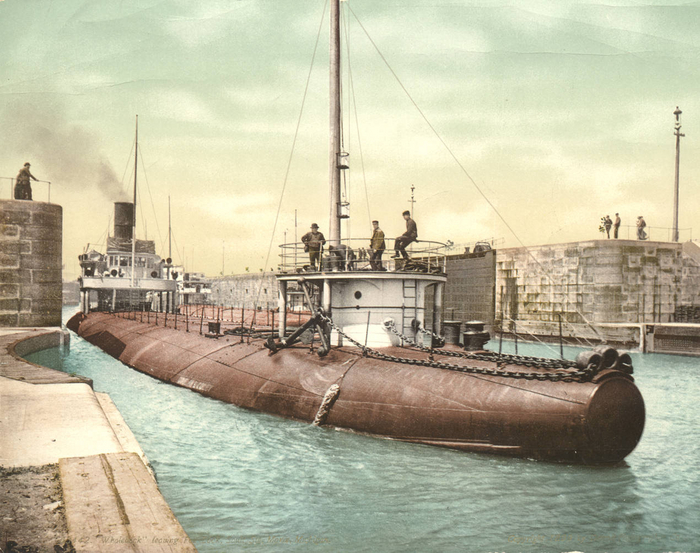 Справа, кстати, интересный вариант - первое своего рода полупогруженное судно, тип whaleback:
